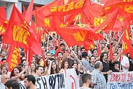 Les besoins contemporains du peuple ne peuvent pas être satisfaits dans la mesure où le capitalisme se trouve dans sa phase finale, l’étape impérialiste, et est totalement réactionnaire. Les difficultés à reproduire le capital, la concurrence des monopoles pour leur domination renforce les attaques visant à réduire le prix de la force de travail, et augmenter le taux d’exploitation. Même les petits gains requièrent des conflits très durs avec le capital comme l’a démontré la grève héroïque de 7 mois menée par les métallos à Aspropirgos, et qui a été soutenue de façon consistante par le KKE et le PAME aux côtés de milliers de travailleurs en Grèce et à l’étranger qui ont exprimé leur solidarité de classe.